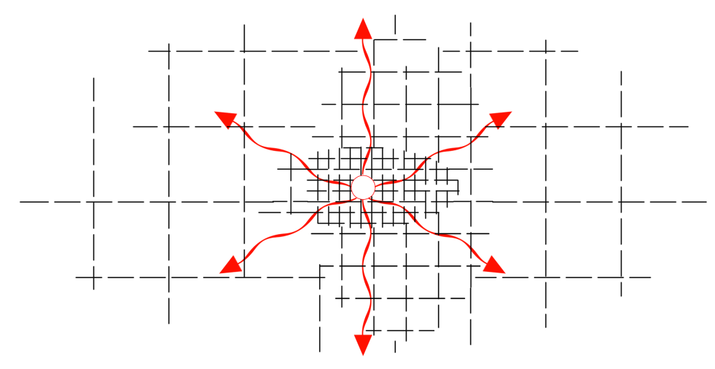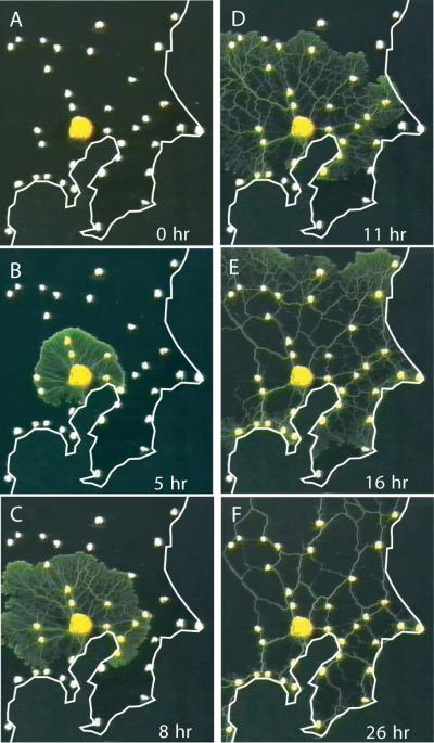 התפשטות תפטיר (רשת תת קרקעית של פטריות). מחקר שנעשה ביפן ב2010, בו הניחו פתיתי מזון בצורה של העיר טוקיו גילו שהרשת בנתה את עצמה בצורה כמעט זהה למערכת הרכבות של העיר.