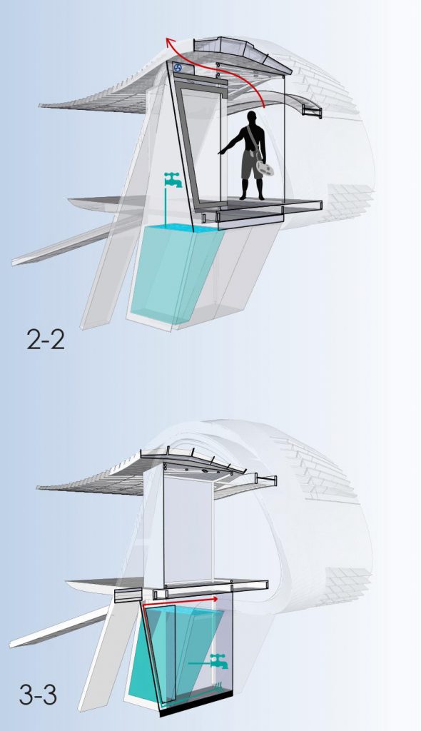 מיכל מים המתפקד גם כמאגר מים של המבנה וגם כמסה תרמית למיזוג האקלים הפנימי